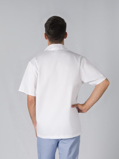 Moška tunika, ki navdušuje s klasičnim izgledom in krojem. Zapenjanje je na pritiskače, ki so skriti. Tunika ima klasičen ovratnik, kratke rokave, dva našita žepa spredaj in en prsni žep.