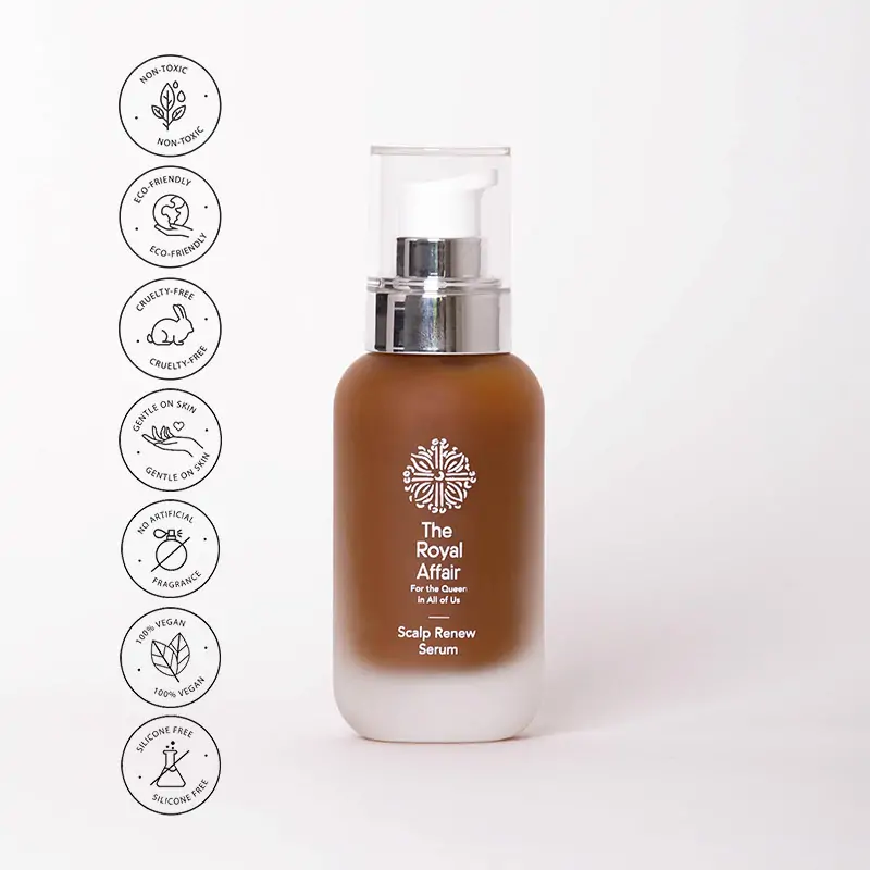 The Royal Affair obnovitveni serum za lasišče ne vsebuje trdnih delcev ampak z encimi temeljito očisti lasišče, ter se tako bori proti prhljaju, zmanjšuje mastenje in izpadanje las. Odstrani odmrle kožne celice in druge nečistoče, s čimer pusti lasne mešičke čiste. Kar preprečuje izpadanje las in pomaga, da lasje ostanejo dvignjeni pri koreninah, gladki in sijoči.